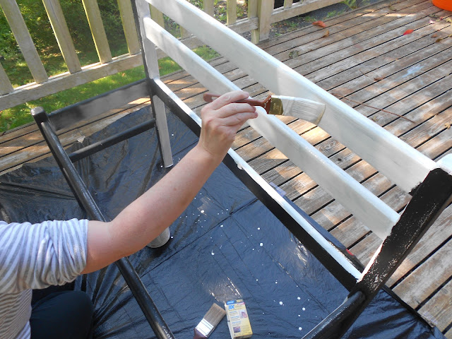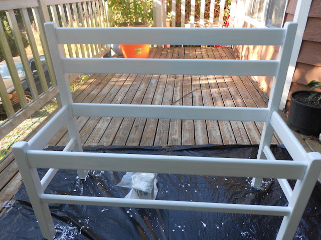 Here is the bench after two coats of paint. I let the first coat of paint dry over night because it was enamel, and it seemed to be drying slowly. Now on to the bench seat.