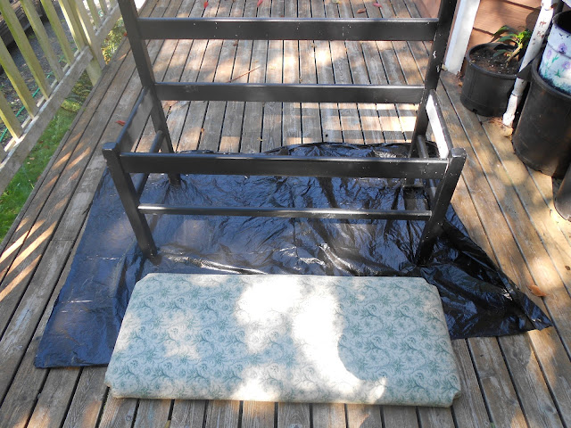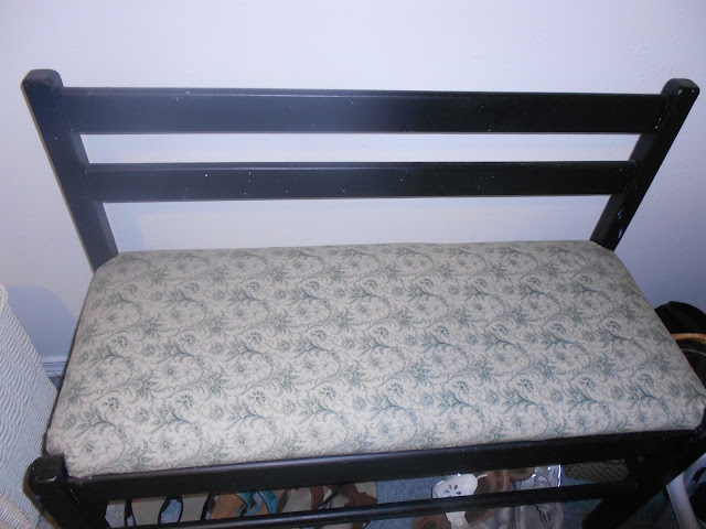I've had this old bench around for years. I bought it at a yard sale, and it's been passed back and forth between my daughter and I a few times. I thought it really needed a makeover, and I was tired of the black wood and old fabric.