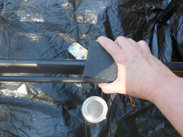 I took the bench outside and took off the seat, super easy since it just lifts out. It's a gorgeous day for an outside project!