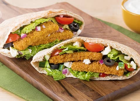 I made a simple version just eating the fish sticks as they were right from the box but they can be used in many recipes. Like the Greek Salad Fish Pitas and Fish Parmesan with Pasta Primavera